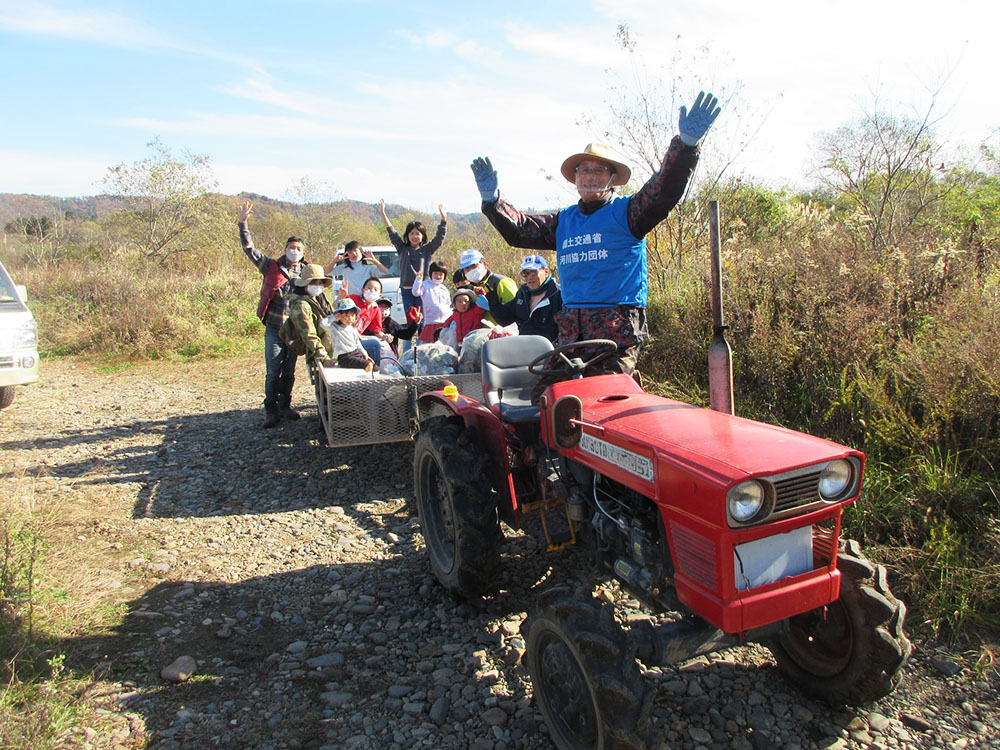 清掃活動を行いながら交流を深める事も目的とし、清掃活動後には豚汁等のおふるまい、子供達を優先とした北上川遊覧も行っています。