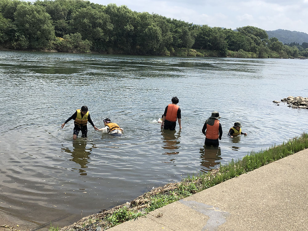 ライフジャケットを着て北上川の流れに身をまかせて流れてみましょう!